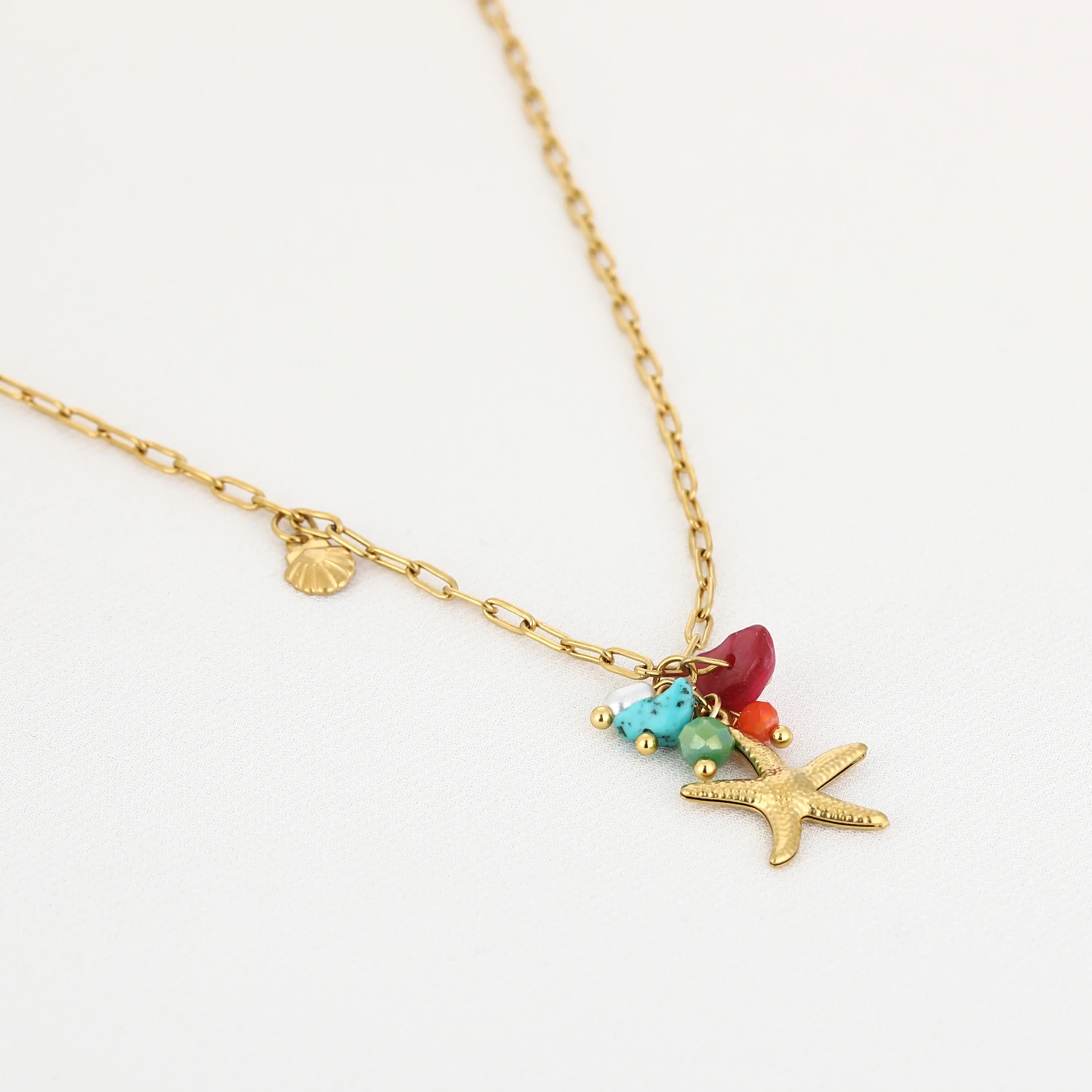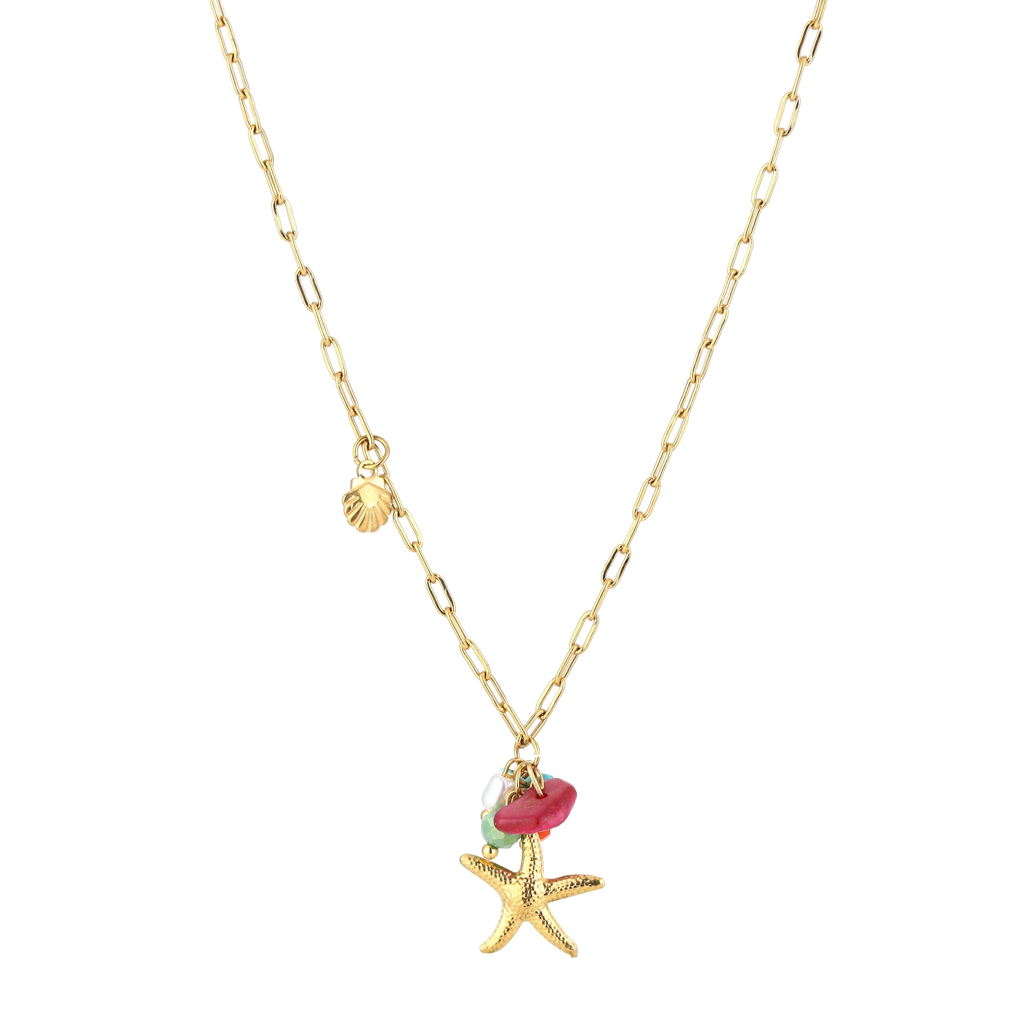 Deze kleurrijke ketting van Michelle Bijou is gemaakt van premium stainless steel en laat je stralen dankzij de zomerse twist met leuke bedels van een zeester, schelpje en prachtige kleine felgekleurde kraaltjes. Shine on!