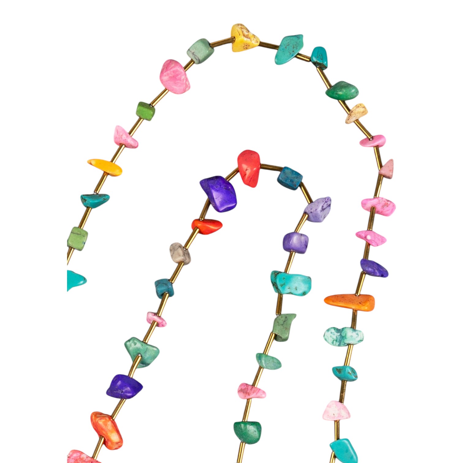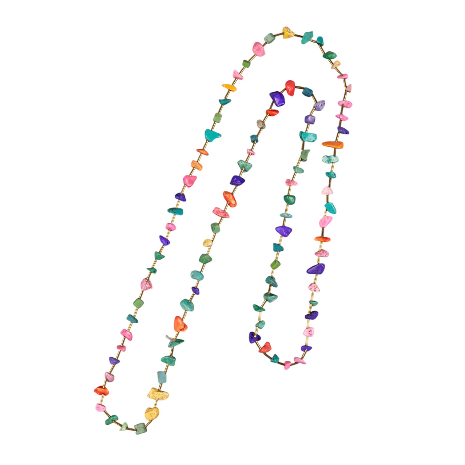 Voeg een speelse en kleurrijke touch toe aan je look met deze prachtige lange halsketting! Gemaakt van hoogwaardig stainless steel en versierd met natuurstenen in verschillende tinten, straalt dit sieraad een unieke, bohemian charme uit. De subtiele schakels en levendige kleuren maken het perfect om solo te dragen of te combineren met andere sieraden.
