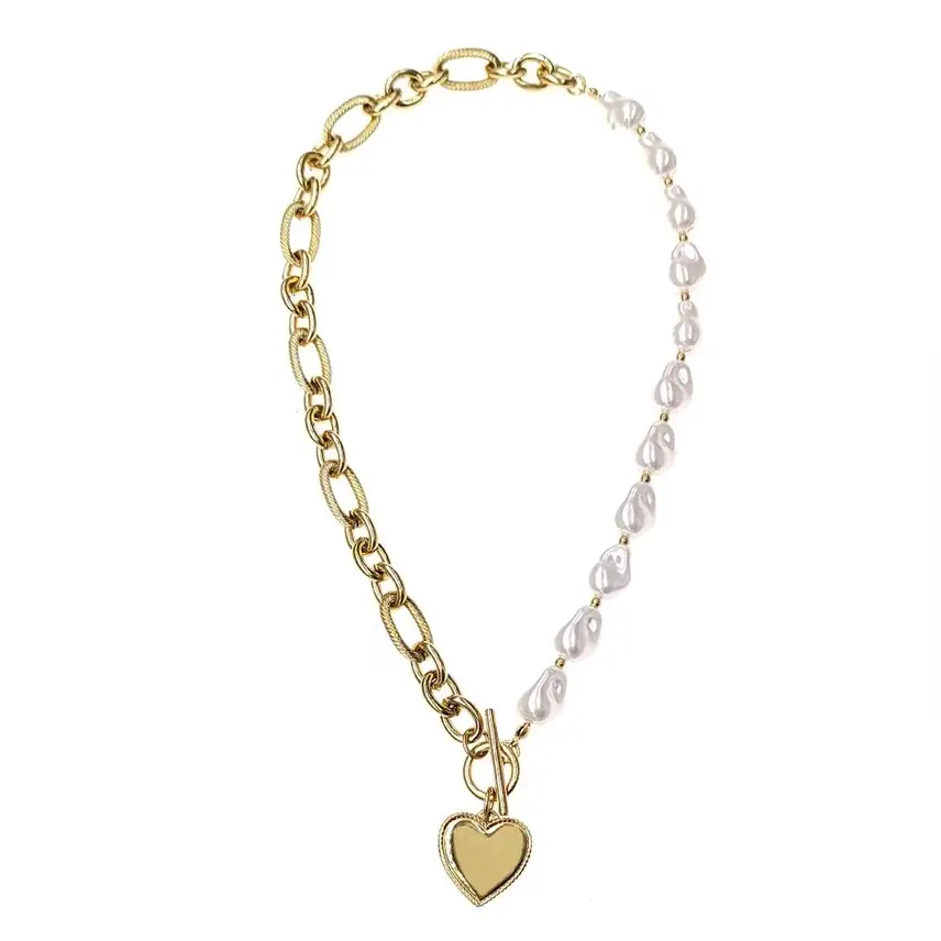 • Goudkleurige schakelketting en geregen parelmoeren kralen
