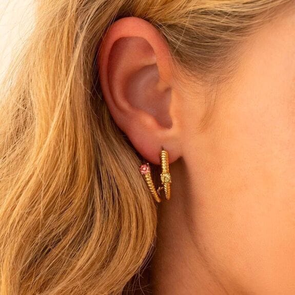 Deze fraaie oorbellen van Bohm Paris zijn gemaakt van roestvrij staal en bestaan uit een mooie elegante gedraaide ring die is bezet met twee zirkoniumoxiden. Doordat ze zijn gemaakt van hoogwaardig roestvrij staal, zijn ze niet alleen stijlvol, maar ook duurzaam, waardoor ze perfect zijn voor dagelijks gebruik. Als je elegantie wilt uitstralen, zijn deze oorbellen perfect voor jou!