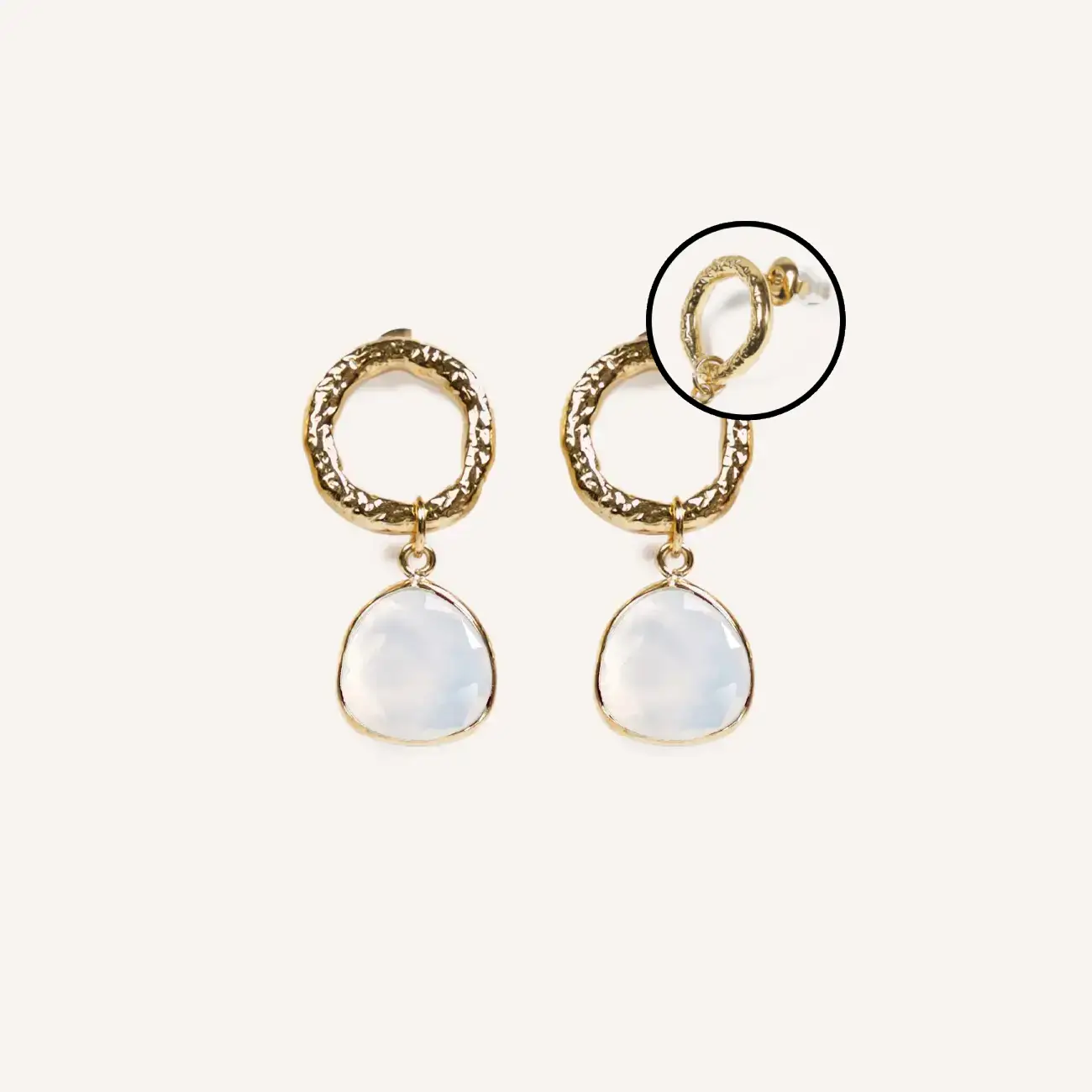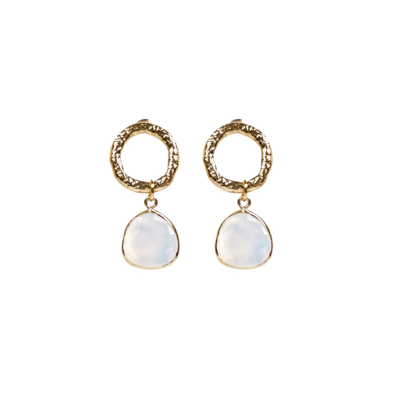Voeg elegantie toe aan je look met deze CUCO CUCA oorbellen, goudkleurig met blanco kristallen hanger, perfect voor elke gelegenheid.