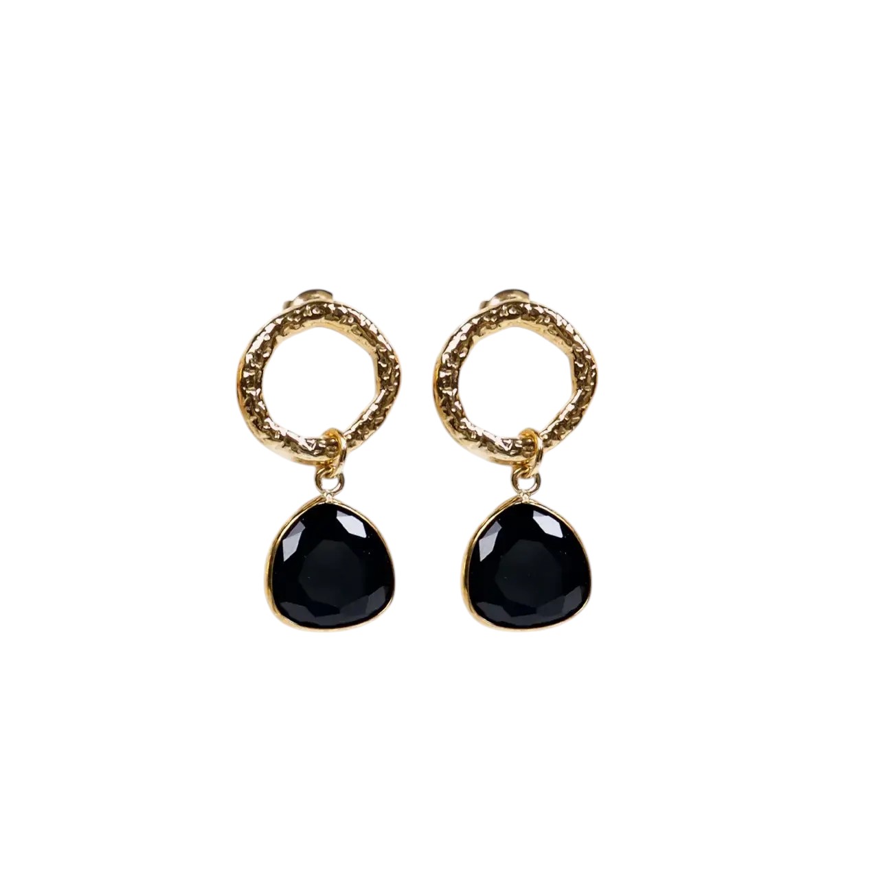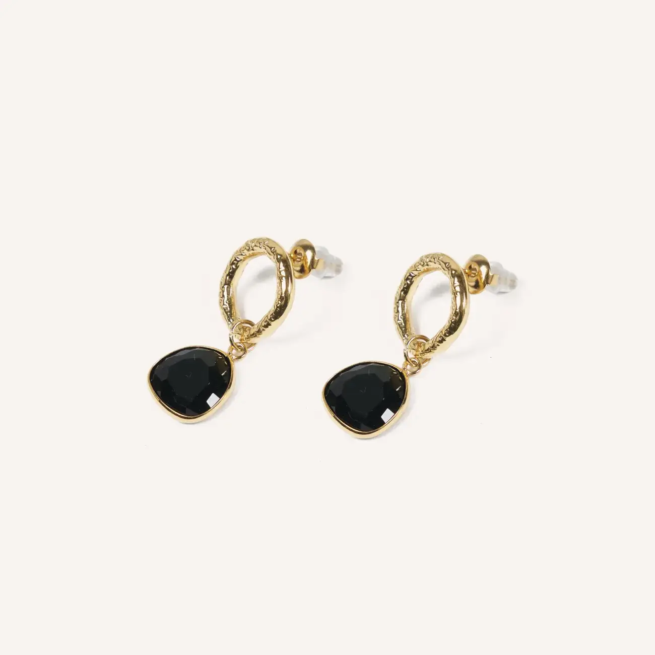 Voeg elegantie toe aan je look met deze CUCO CUCA oorbellen, goudkleurig met zwarte kristallen hanger, perfect voor elke gelegenheid.