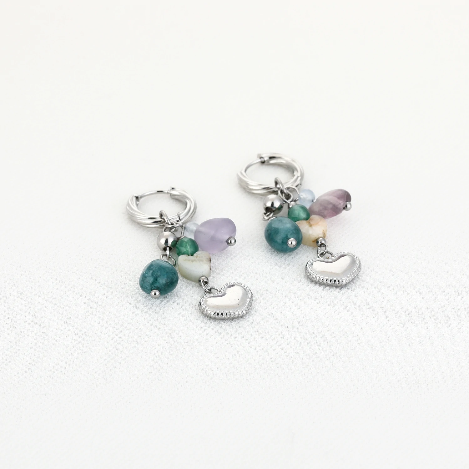 • Oorringen met leuke hangers bestaande uit kleine hartjes en kleurrijke steentjes en kraaltjes