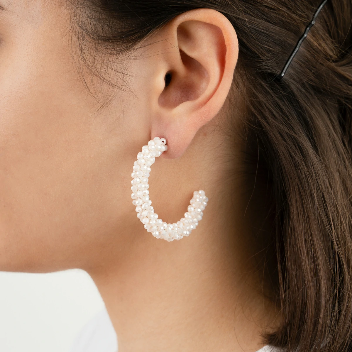 Oorbellen Rond Edelsteentjes Gebroken Wit