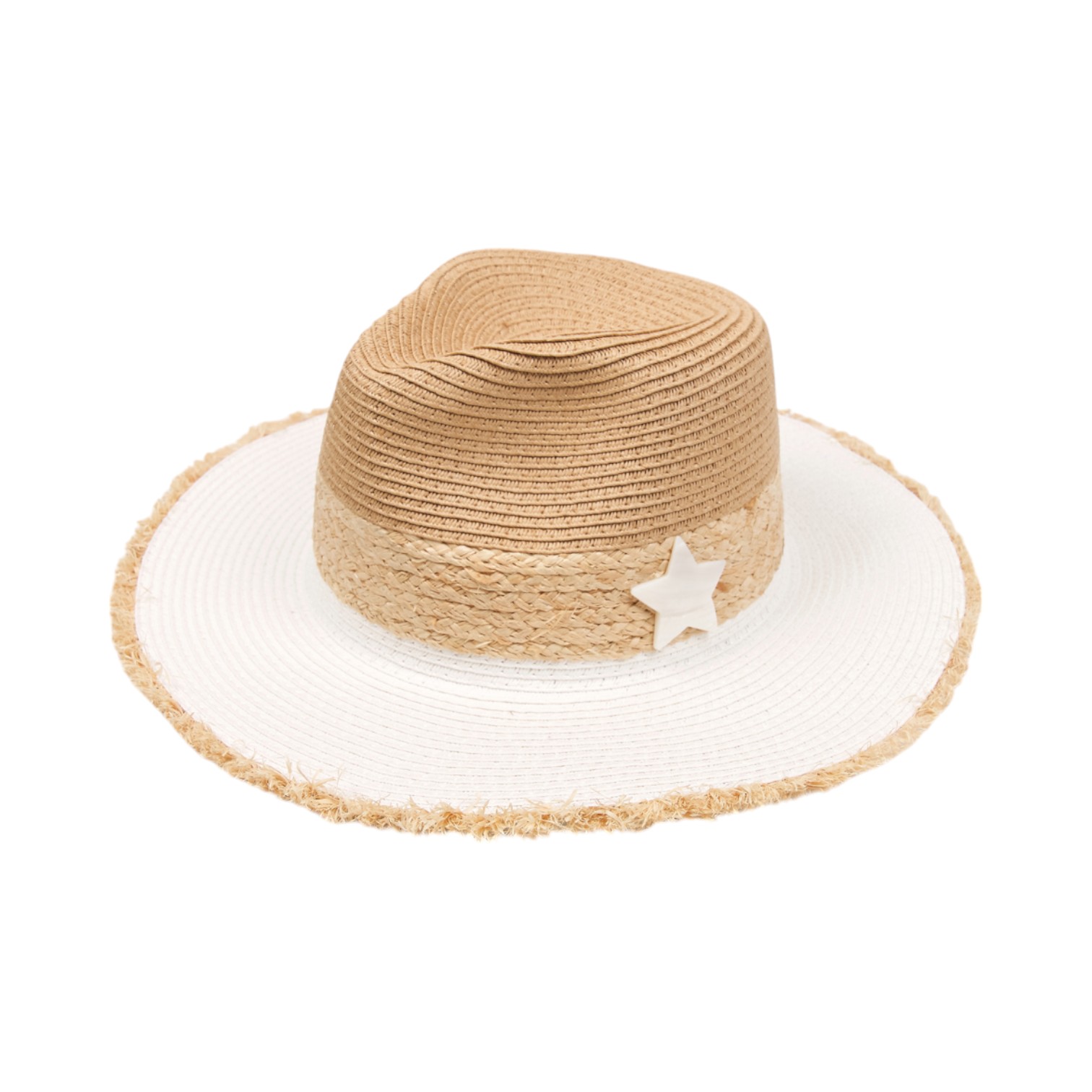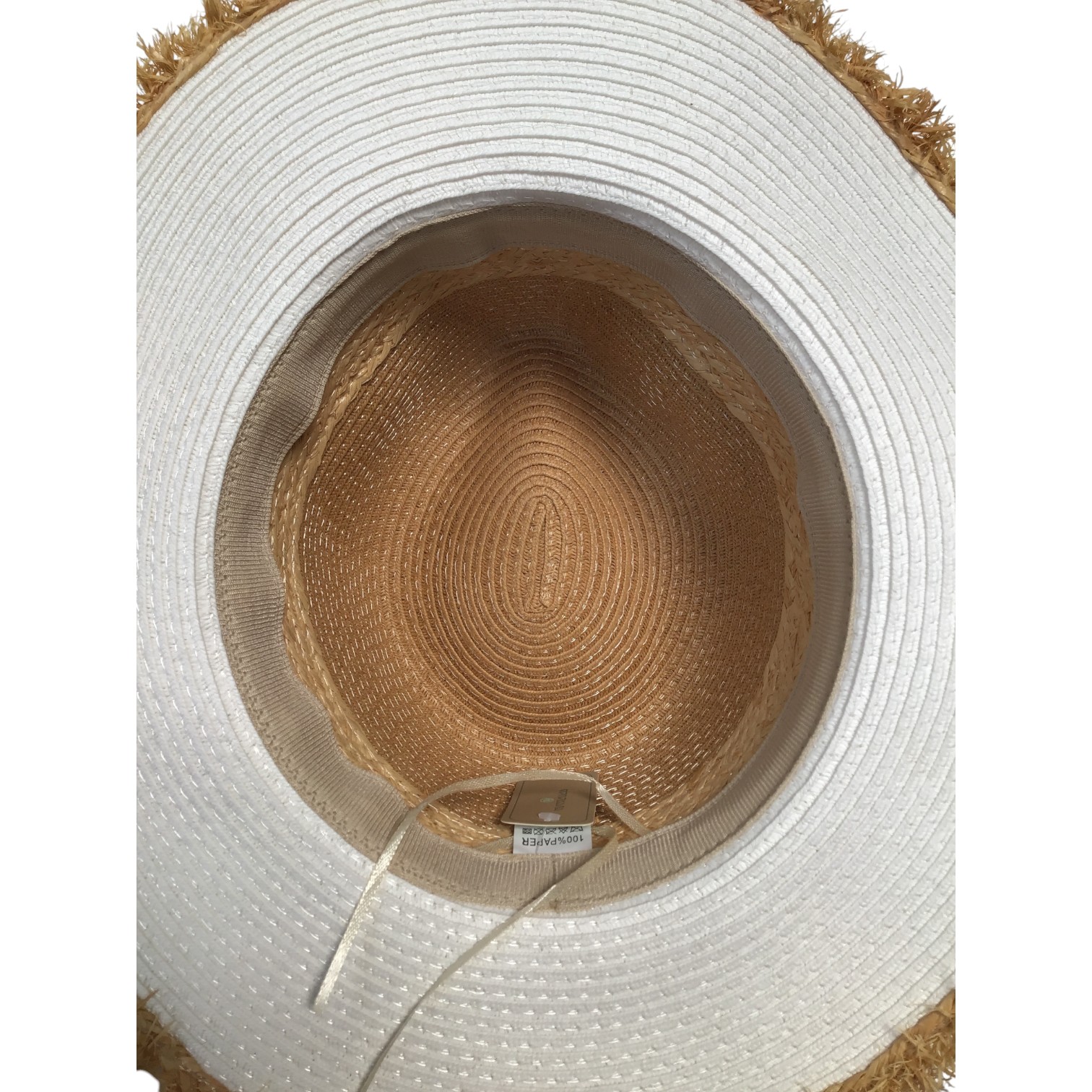 Voeg een vleugje elegantie toe aan je zomeroutfit met deze prachtige dameshoed. Gemaakt van 100% papier, is deze lichtgewicht hoed perfect om je te beschermen tegen de zon terwijl je stijlvol blijft. De naturelbruine kleur, gecombineerd met wit en een speelse rafelrand, zorgt voor een frisse en zomerse uitstraling. Ideaal voor op het strand, tijdens een picknick of een zonnige stadswandeling. Dankzij het ademende materiaal en de comfortabele pasvorm blijf je koel en comfortabel, zelfs op de warmste dagen. Een absolute must-have accessoire voor elke zonnige gelegenheid!
